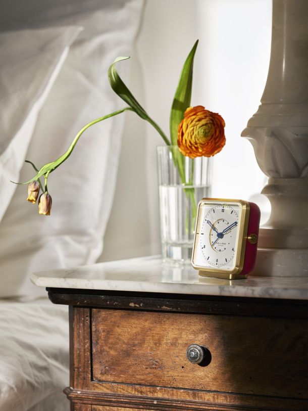 Yet the search was certainly connected with familial nostalgia. The founder loves to tell of her source of inspiration: her grandmother Suzanne Brunner. Born in Paris in 1911, Suzanne became an icon of stylish elegance in her time. In all her homes from Paris to Southern France, an elegant alarm clock always stood on her nightstand. Anecdotally, Båge links this memory of her mentally alert grandmother with the analog alarm clock. Thus she translates the alarm clock search into a manifesto that attempts to reclaim space from the digital environment and recover precious time.