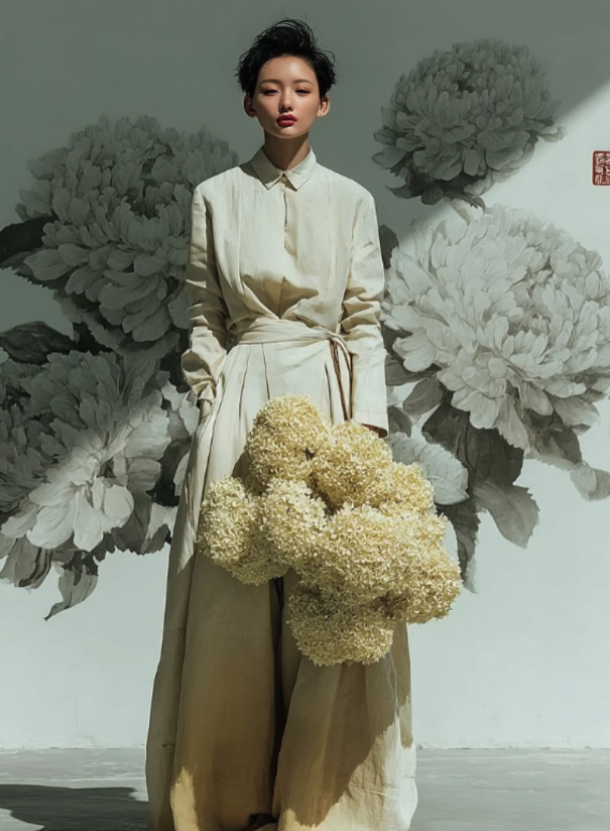 The visual language of the silk carries a coded message. Cranes signify eternal love and longevity. By bringing these symbols into a modern context, the wearer becomes part of a continuous narrative. This is quiet luxury where meaning is woven into the fabric—visible to those who understand that true beauty is a vessel for history and hope.