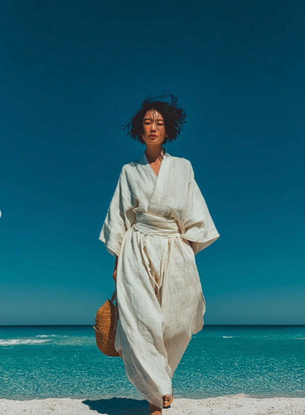 Marina Furuta works with the ‘Tanmono’—the traditional rolls of Japanese silk that have never been cut. In her London studio, she treats these unplayed instruments of craftsmanship with the utmost respect. The weight of the heavy silk and the vibrancy of the Yūzen dyeing techniques are not just preserved; they are given a new, international silhouette.