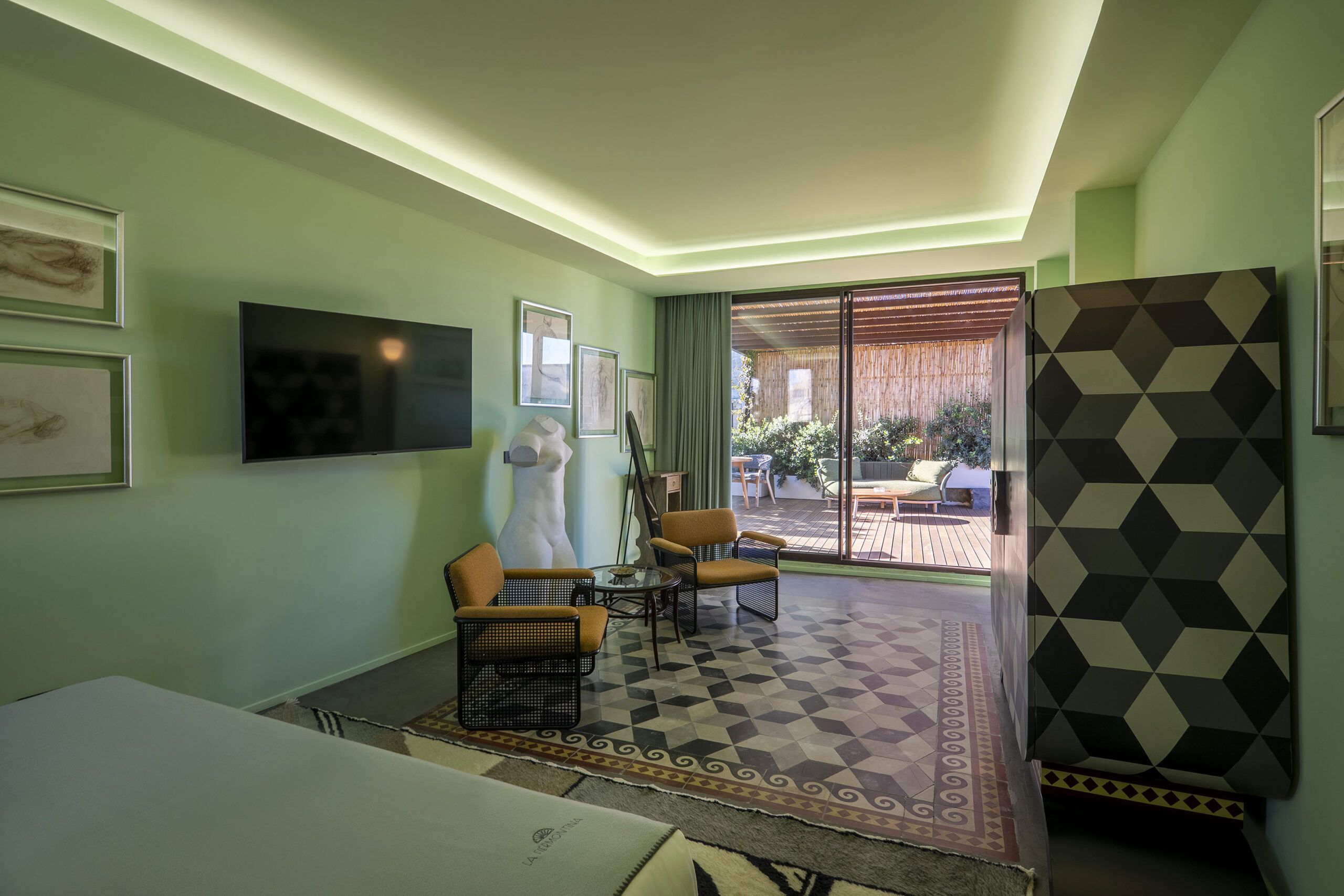 To live here means to become part of the narrative. One lodges where Letourneur and Zwobada once lived house to house in spirit. One looks from a private terrace into a garden and sees the sculptures as Antonia once did. Each suite becomes a chapter that one opens for oneself. The spatial experience reflects Antonia’s movement between the men, between the arts, between adaptation and departure.